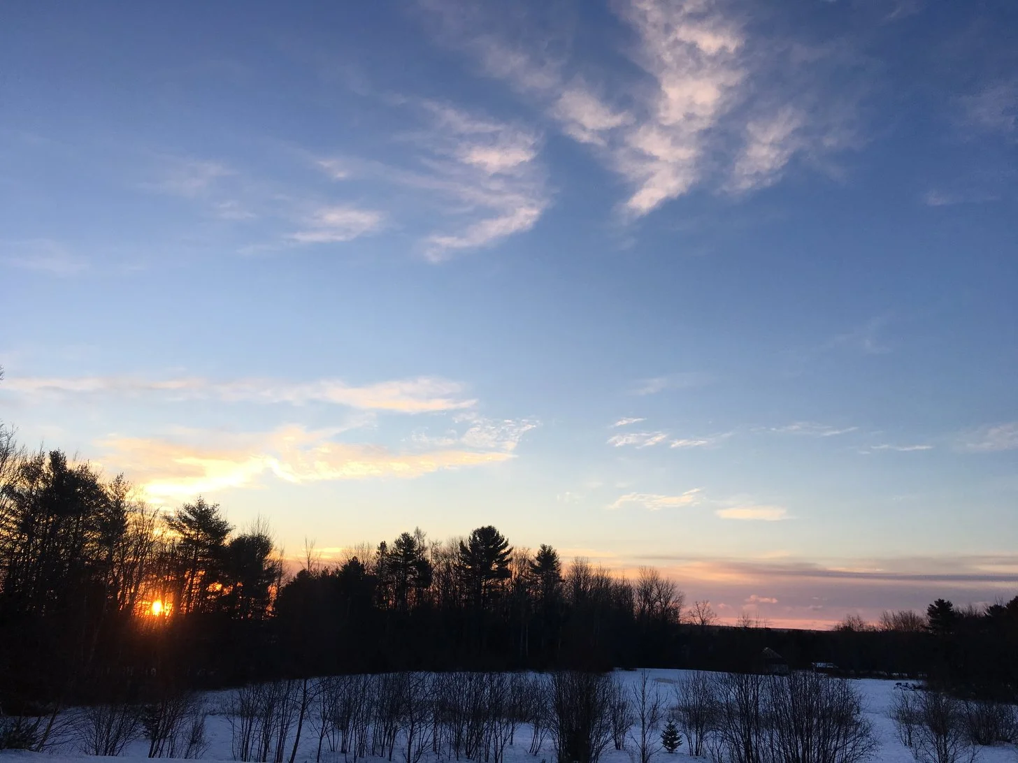 Parked outside my sister’s then home on Maine’s coast, it was shaping up to be a postcard New England Christmas. There was fresh snow, a stunning sunrise, and frost in the corners of all the windows. Well, maybe the ice was on the inside of the windows…and the roof? I wondered where all the water would go when it melted, but the rising sun’s rays shone through the thin prisms. Turning the inside of the Jeep a warm shade of orange. There was nothing toasty about the moment but a beautiful and unique way to start the day!