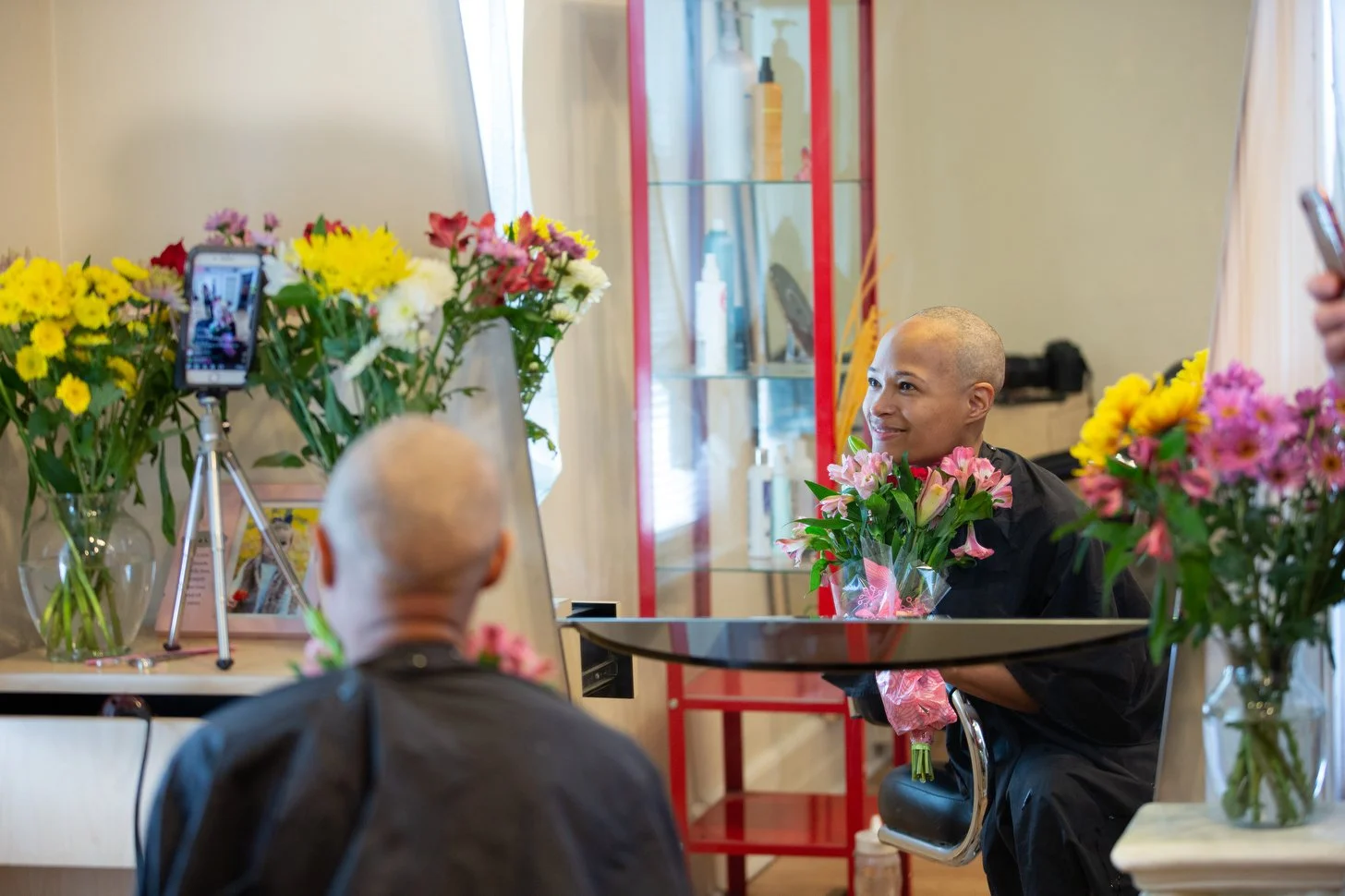 Our time together would begin with a visit to the salon to shave her hair ahead of chemotherapy treatment. During the drive to the salon, Larissa shared her struggles with losing her hair the first time. For this second experience, she chose to share it publicly, live-streaming the event on Facebook. I was in awe of her bravery to share this personal experience with strangers.